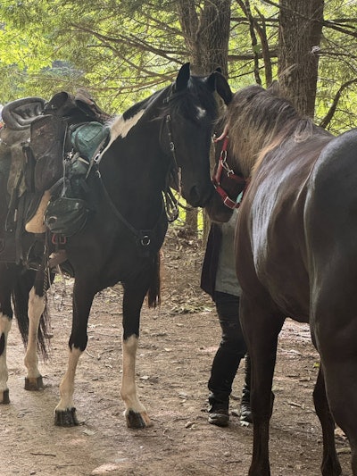 Dancer and her rider were traveling a forest trail June 22 in Maine when they slid down a hill into a mud hole.