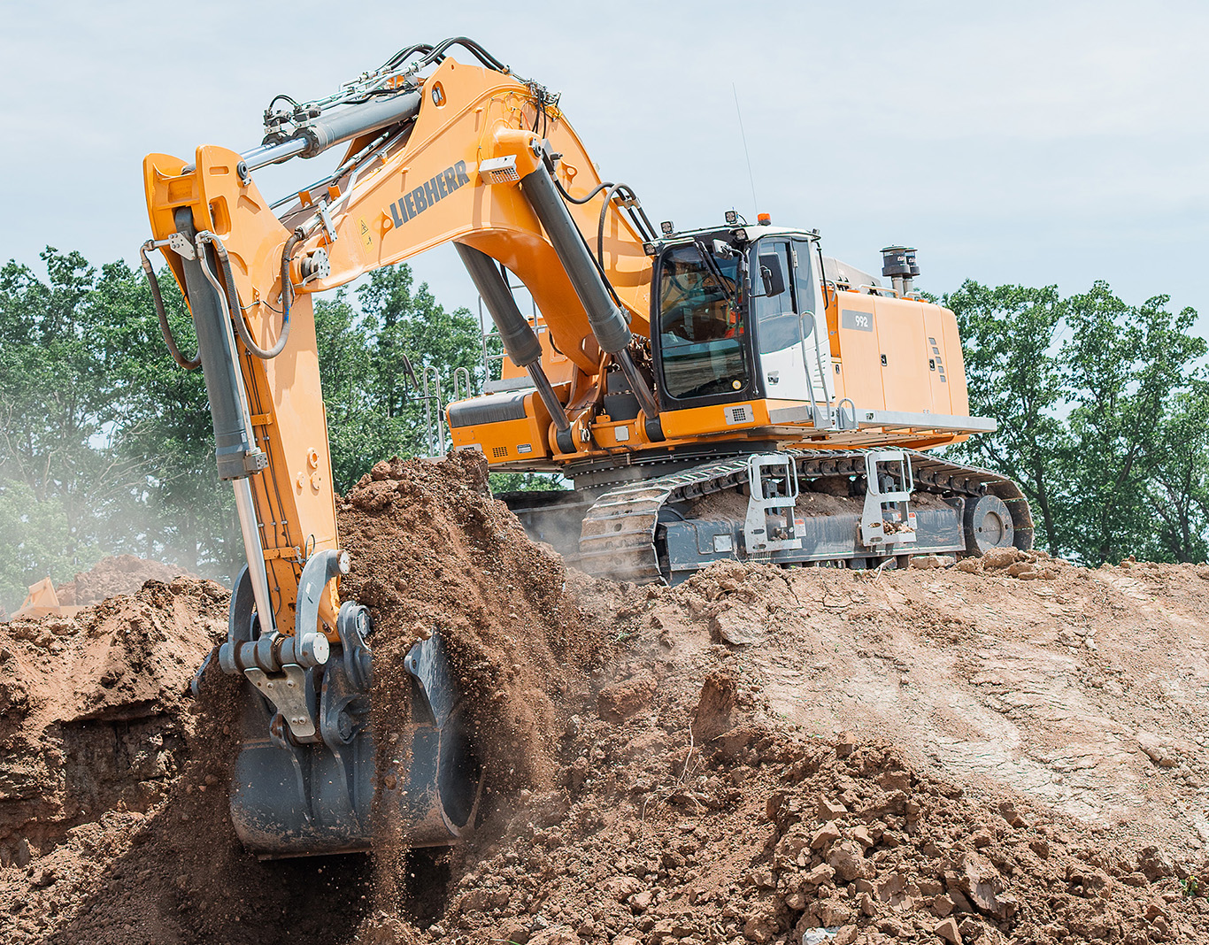 The R 992 is part of a new range of large-capacity Liebherr crawler excavators designed for intensive applications, especially in the mining and quarrying extraction sectors and in bulk earthmoving.
