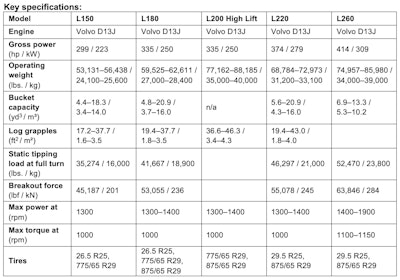 The company plans to launch five next-generation loader models in 2025: the L150, L180, L200 High Lift, L220 and L260. The models range from 53,131 to 85,980 pounds and 299 to 414 horsepower. (See detailed specs at the end of this article.)