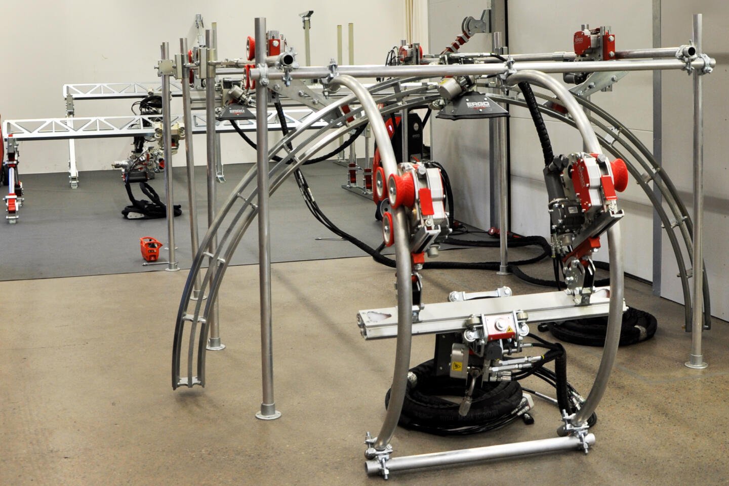 The Support System, with only nine components, is modular and offers both lightweight and heavy-duty versions to accommodate different power head configurations. The light version is optimized for use with the Ergo system, while the heavy version offers greater stability for high-force applications such as those involving the Aqua Cutter 750V.