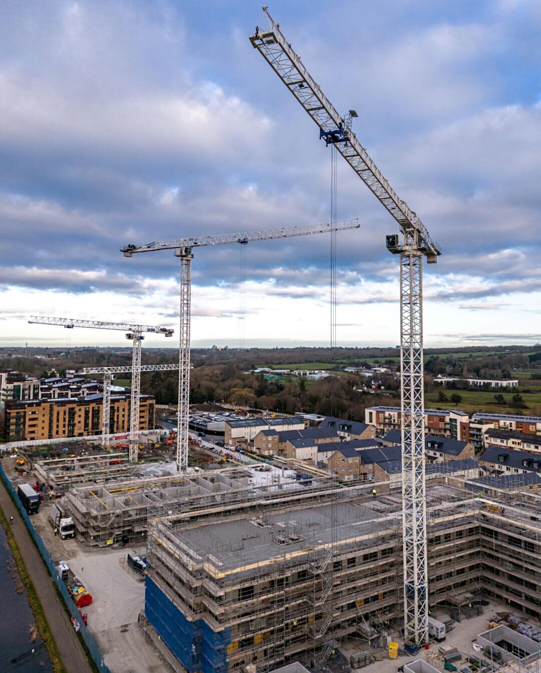 Irish Cranes supplies Raimondi MRT573 topless tower cranes to Walls Construction, the heaviest lifters in the company’s fleet set to remain onsite until project completion.