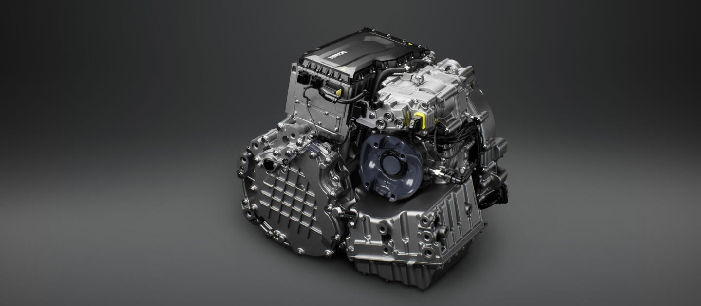 The motor transforms the electric energy stored in the battery into mechanical energy, creating torque, while the inverter transforms the direct current voltage from the battery into a three-phase alternating current. This converted power is then fed to the electric machine, enabling it to effectively control and adjust both speed and torque. There is also a single oil system with two oil pumps, which cools the e-machine and lubricates the gearbox.