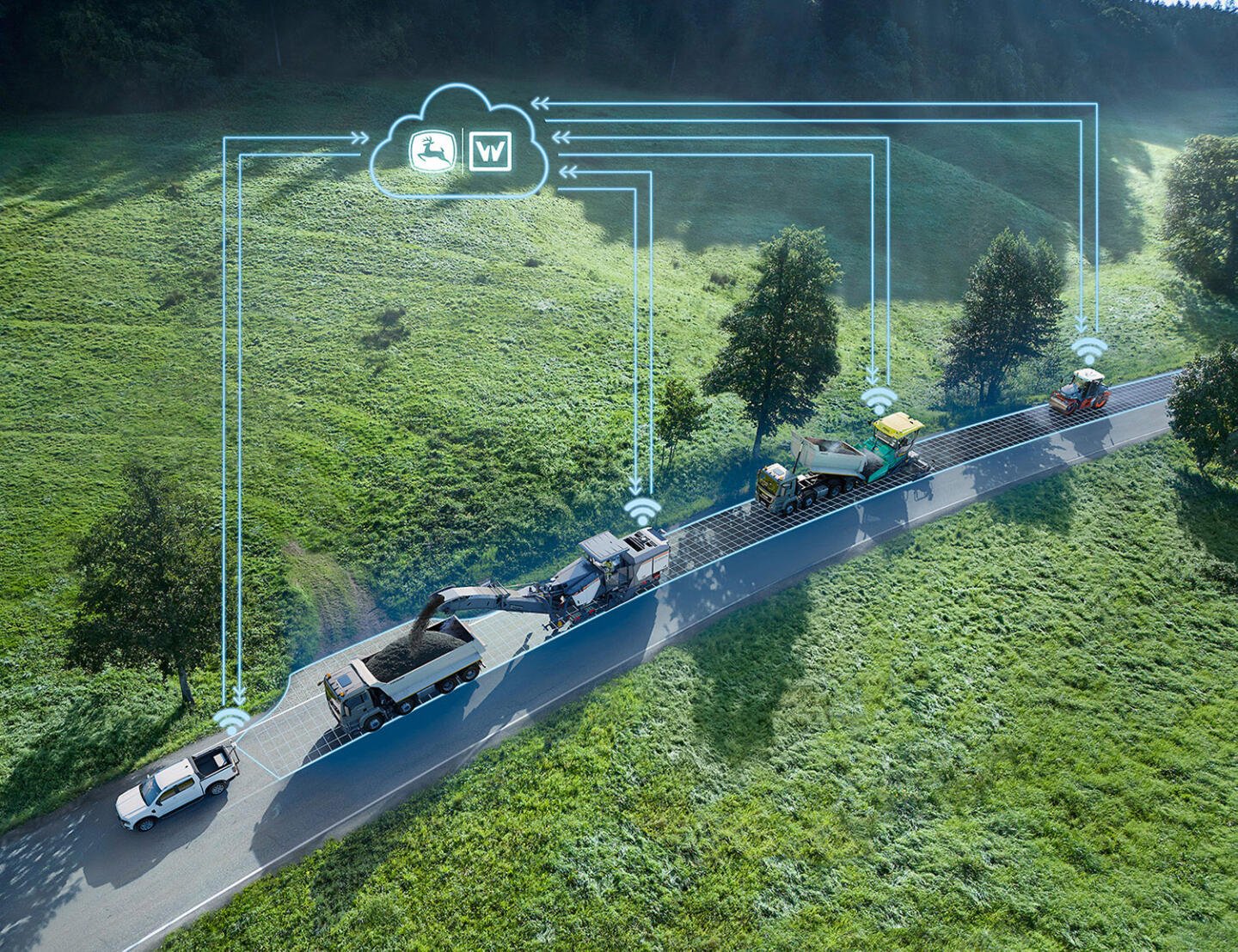 Smart Automation in Roadbuilding, the new digitalization and automation solution from the Wirtgen Group, enables the realization of precise and cost-efficient paving results in compliance with planned targets with the core construction crew and without the need for additional, specialized personnel. Factors such as costing analyses in advance also enable optimization of the material volumes and logistics required for the realization of the project.